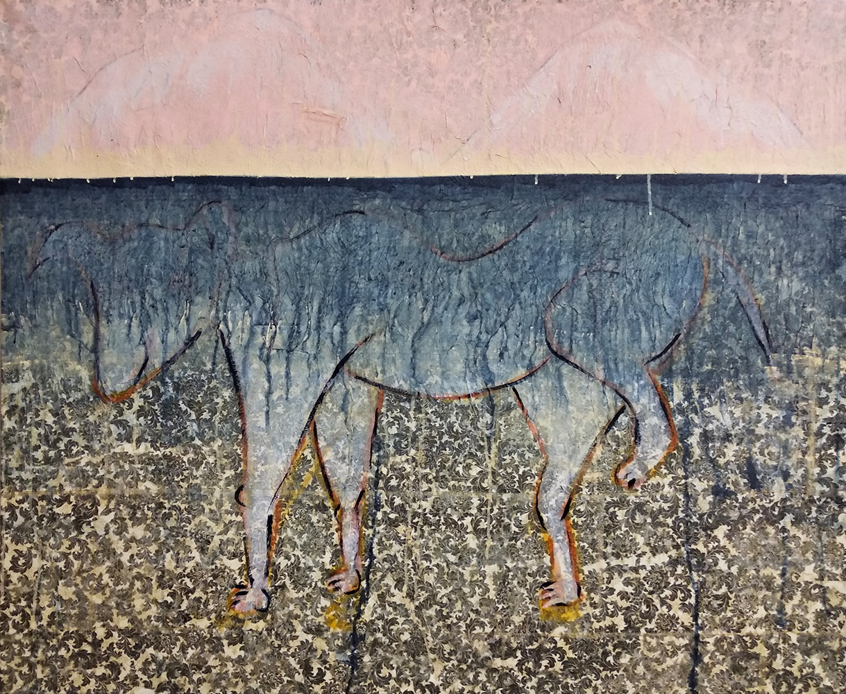 Paper collage and acrylic paint on jute cloth, 60x80cm. 2021-24