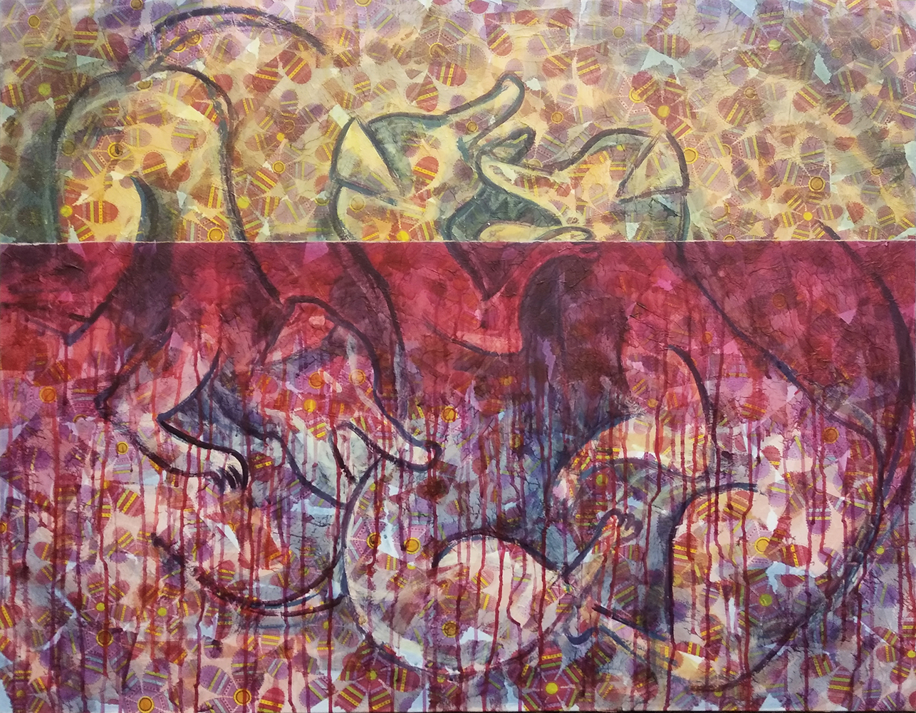 Paper collage and acrylic paint on canvas. 60X40cm. 2017