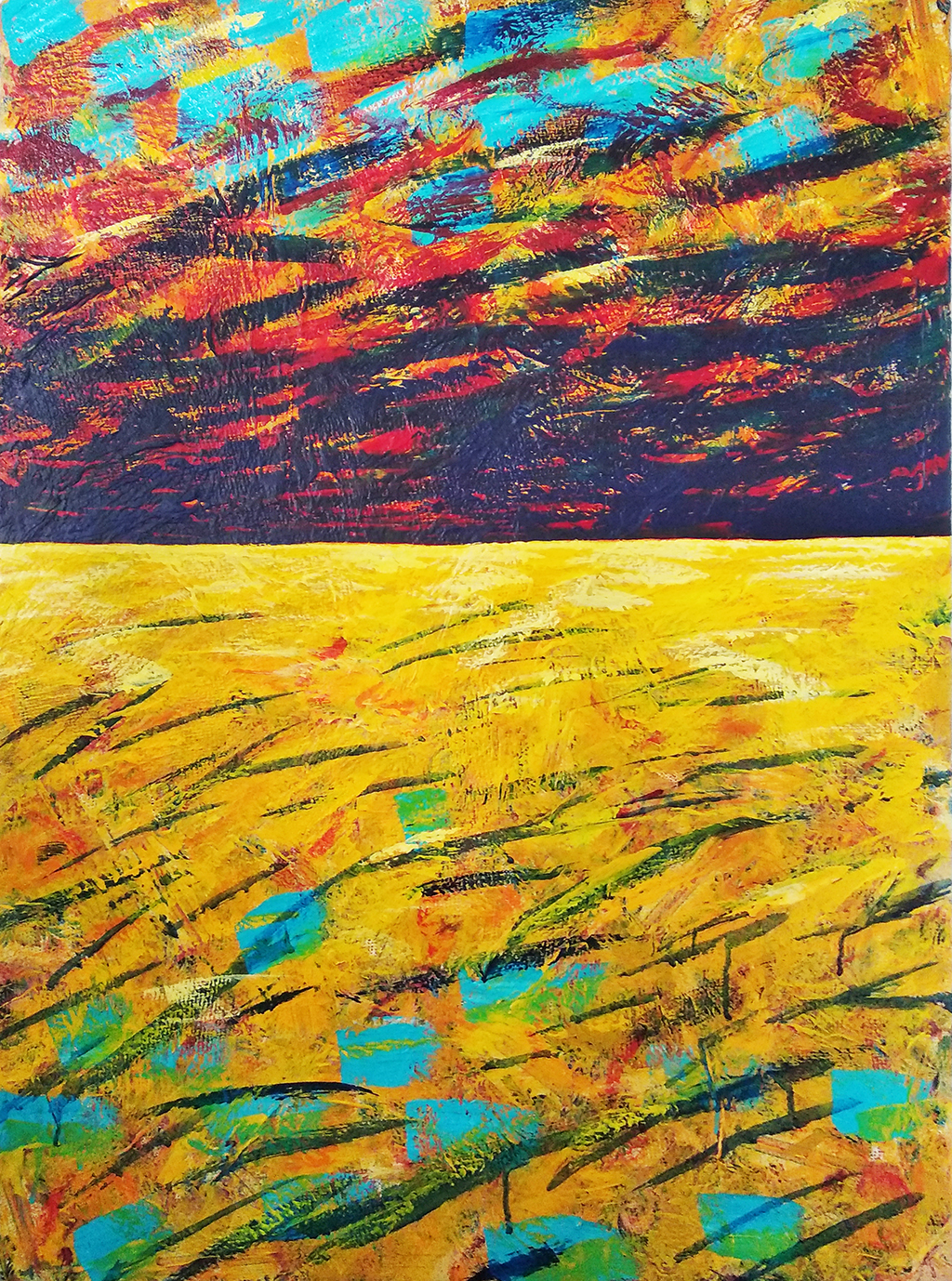 Paper collage and acrylic paint on jute cloth. 60X80cm. 2020