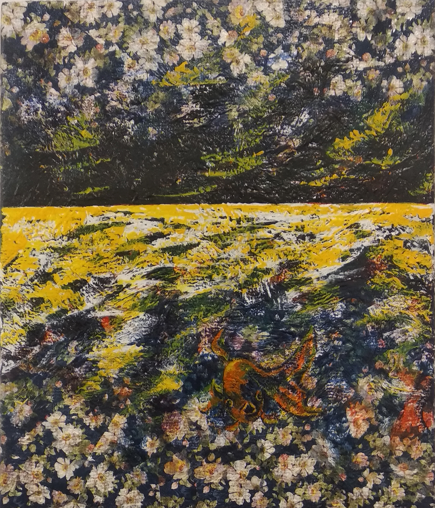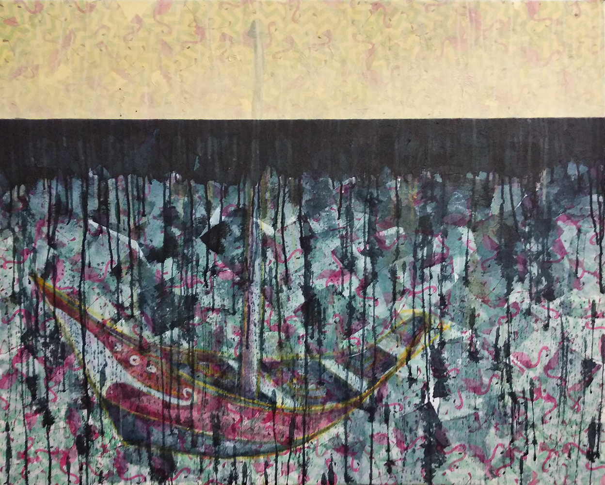 Paper collage and acrylic paint on canvas. 50X70cm. 2017